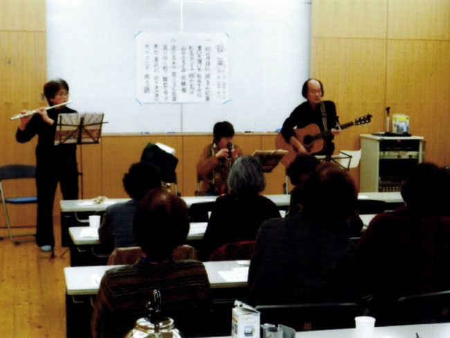 前半は、皆で楽しくレクリエーションや、講師を招いたり、楽器演奏、またはビデオ観賞等にて過ごし、後半の1時間はボランティアの講師にお願いして、椅子に座って出来るストレッチ、筋力トレーニングに取り組み、健康づくりを進めています。